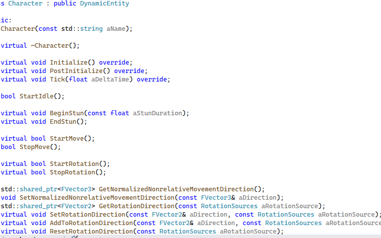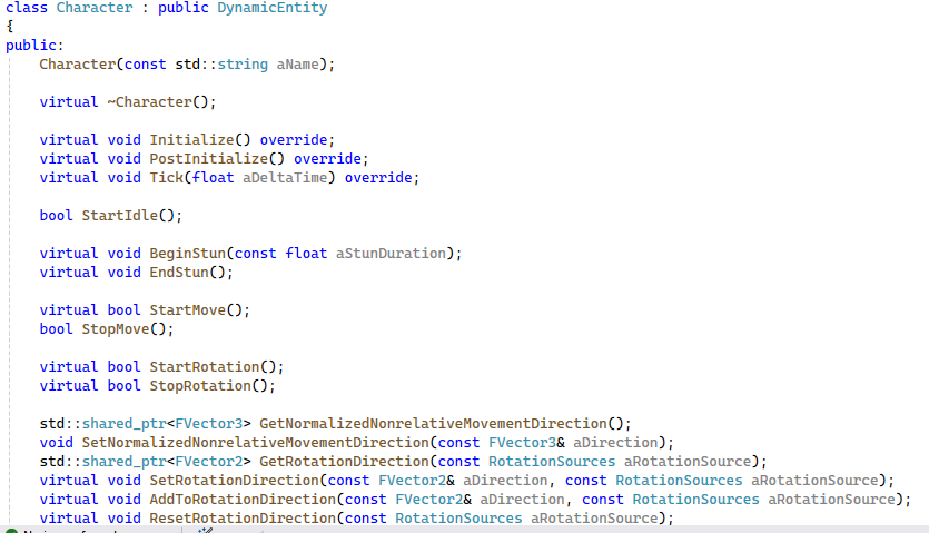 Much like in P7 I implemented not only the stats of the player, but also nearly all the base variables and functions shared between all entities and characters.
