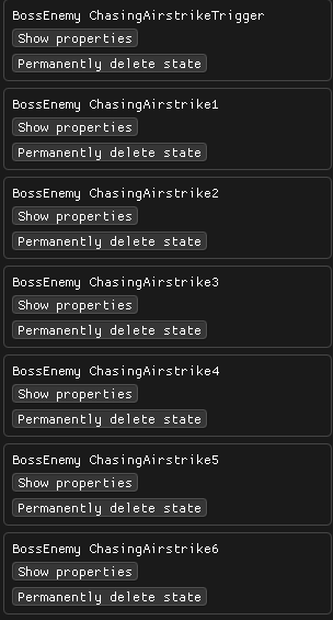 Thanks to the versatility and modularity of the state machine, the boss' attack patterns can be created by linking states in unique ways. For example, one of the boss abilities is a chain of several AOE attacks that transition to each other in rapid succession, giving the illusion of them being part of a single, bespoke state when it in reality they are several states stringed together in an unique way.