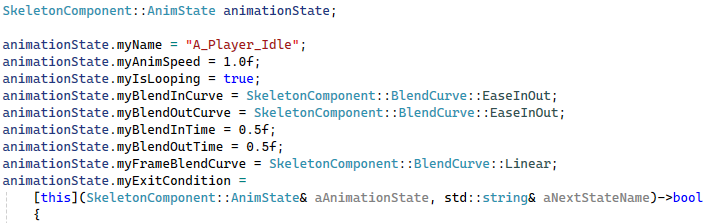 Again like in P7 we implemented animations into the game using a animation state system. Each animation state has its own exit conditions, meaning that they can have their own tailored transitions to other animatons.