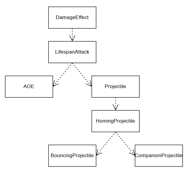 An important part of the attacks and abilities in P6 is their hierarchial structure. All attacks share the same hierarchy but differentiate in how far down it they go. Because the attacks follow the same structure they are highly modular and well suited for implementation through the state machine.